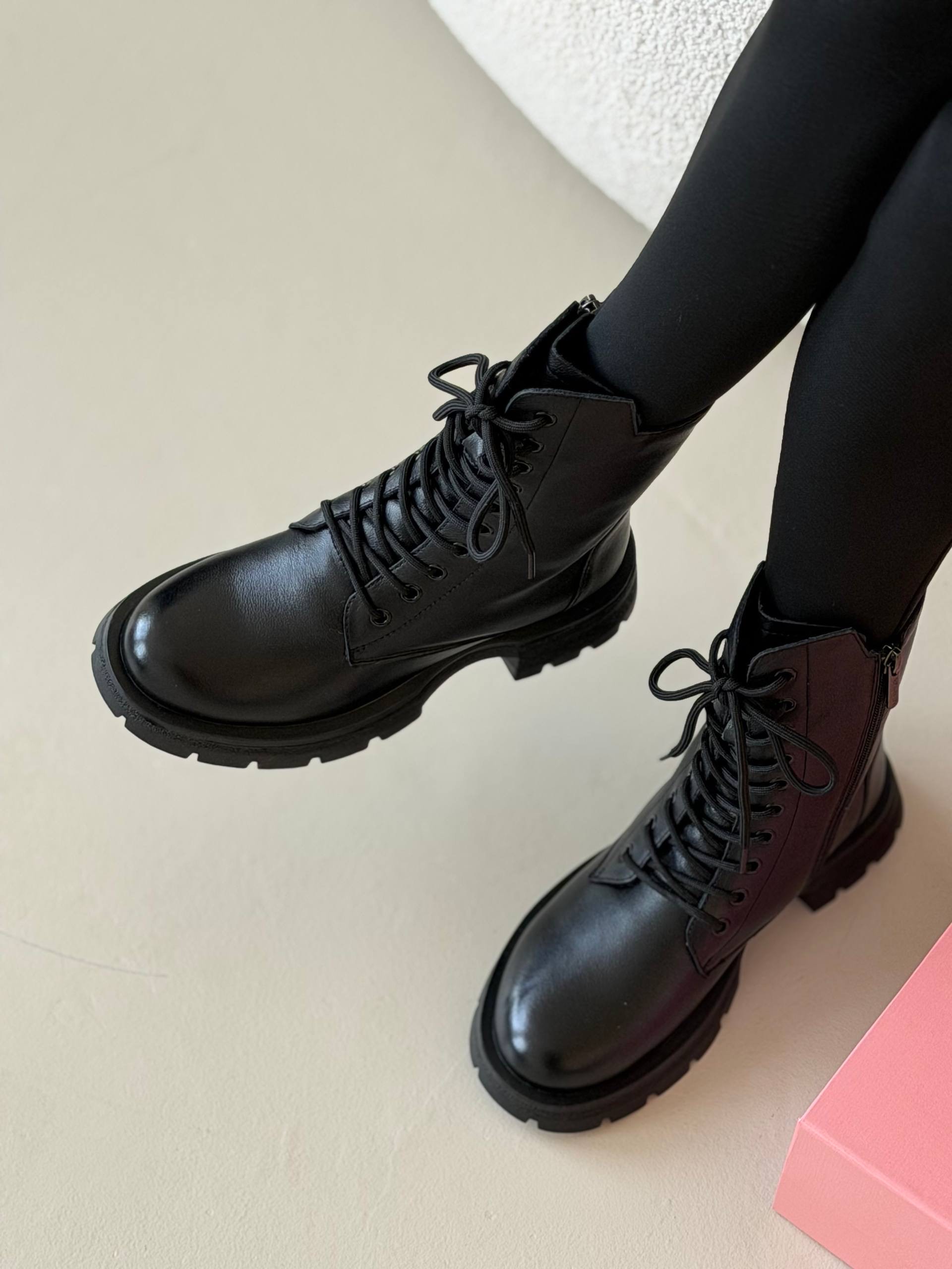Ботильоны казаки “Лола” в черной коже