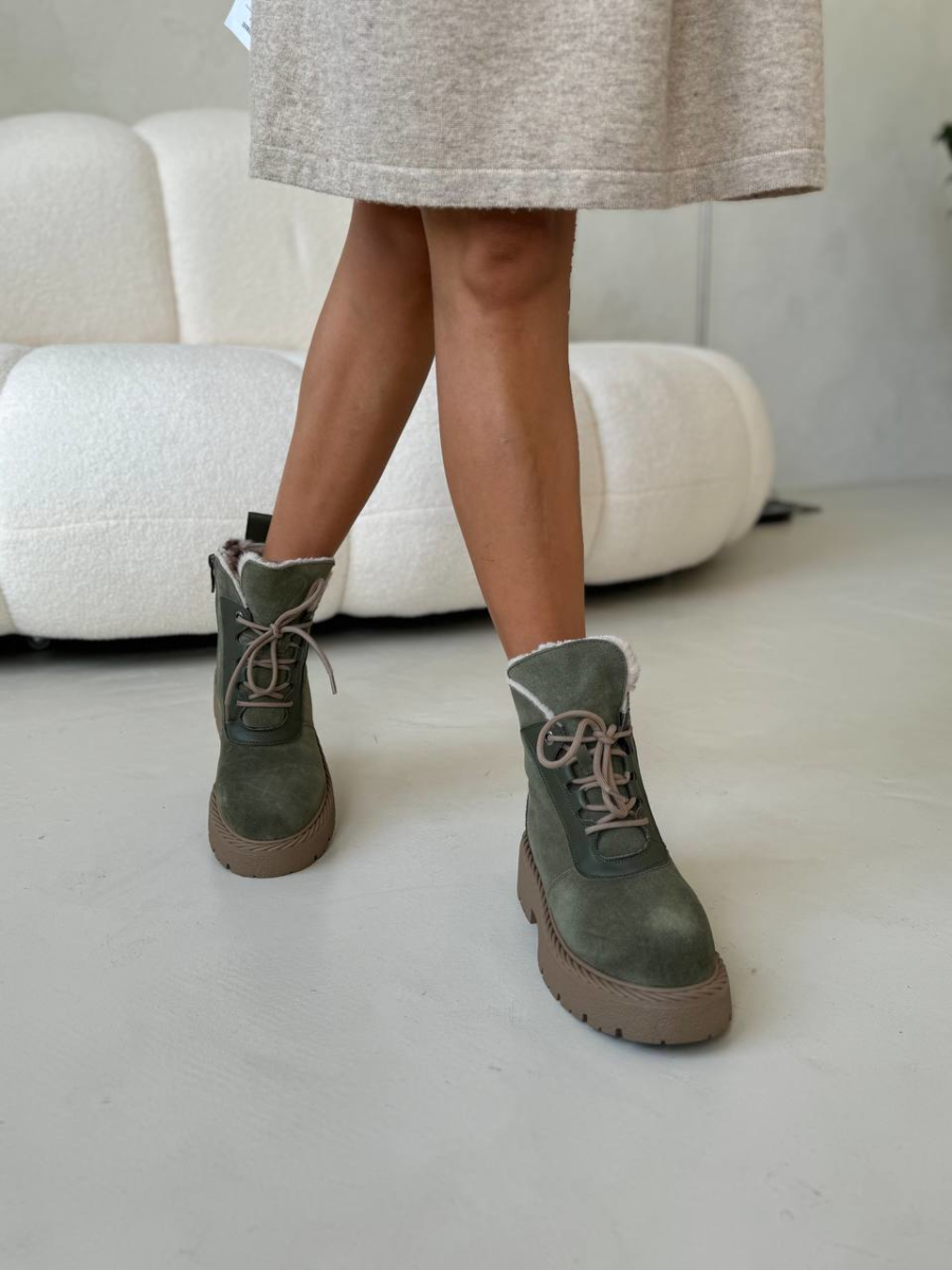 Ботинки зимние “Лайна” в цвете хаки